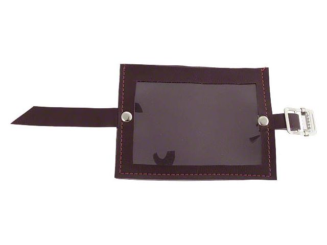 This straps around the steering column. Helps to keeo your insurance card & registration safe & convenient. Made of vinyl with a leather-appeating grain.
