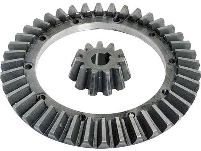 These are standard 3.63:1 ratio gears. The ring gear has 40 teeth and the pinion gear has 11 teeth.