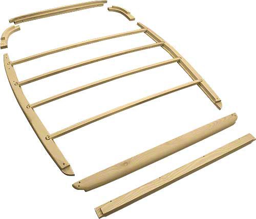 This kit includes: Top ribs, header, right and left side rails, rear cross member, rear corner rails, dome light board, and head board below the header.