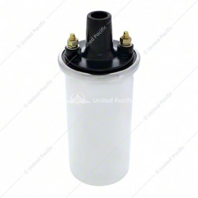 Beautiful high quality chrome plated finish with triple chrome plating process. Quality replacement for standard 12V ignition coil. Requires external 1.6 ohm ballast resistor. Secondary voltage is approx. 30,000 volts.