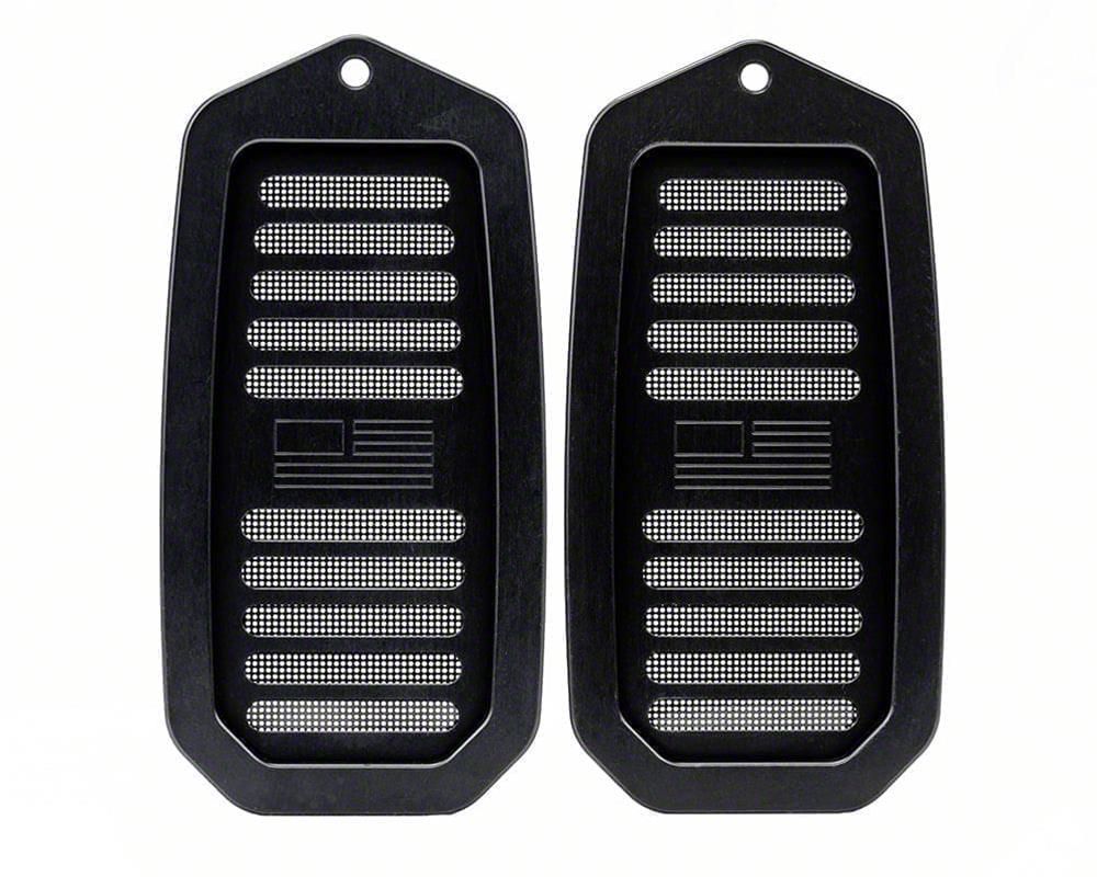 Billet Door Jamb Vents with FLAG logo; Black Anodized (70-72 Monte Carlo)Find parts that fit my vehicle