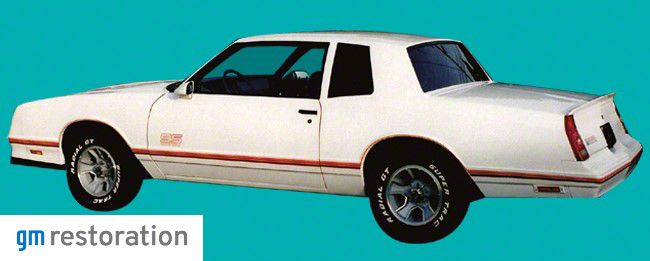1987 1988 Chevrolet Chevy Monte Carlo SS owners can continue the tradition and keep your car looking original. The SS, S/S, Super Sport option remained available on the Monte Carlo. With all exterior decals & stripes kit included in this GM Licensed Resto