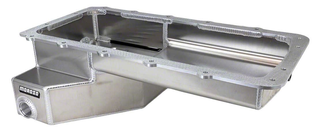 Aluminum, External Wet Rear Sump, 6-5/8" Deep, 9 Quart CapacityEngine Application; Ford Coyote V8, Gen 1 through 4 5.0/5.2, Including GT350, GT500, AluminatorFits; Mustang '11-Up; Mustang '79-Up & other conversions with Ford "Coyote" or "Voodoo" Engines, (Check Dimensions)• Integrated -16AN billet aluminum female pickup for use with external wet sump oil pump• Features drag-race trap door assembly and removable anti-slosh baffle for improved oil control• Fully fabricated aluminum with billet rail for superior fitment• 1/2" N.P.T. fitting for supercharger/turbo drain back