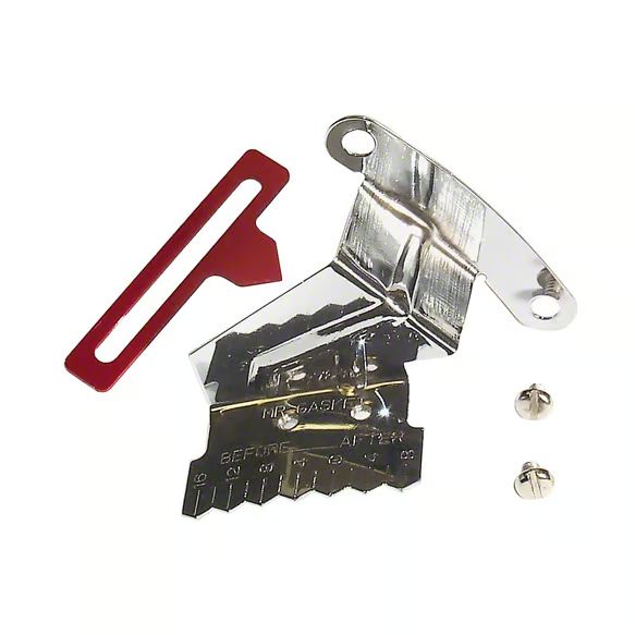 Bolts on using existing timing cover bolts. It is chrome plated steel, which makes is a better compliment to a chrome timing cover. It also has an adjustable red timing pointer. This allows for better visibility and helps you set your timing more easily. Just loosen the screw, set the pointer to the desired initial timing level, and screw it back down. Then you'll be able to more clearly see if your timing is where you want it when checking your timing. Has markings from 16 degrees before top dead center (BTDC) to 4 degrees after top dead center (ATDC).