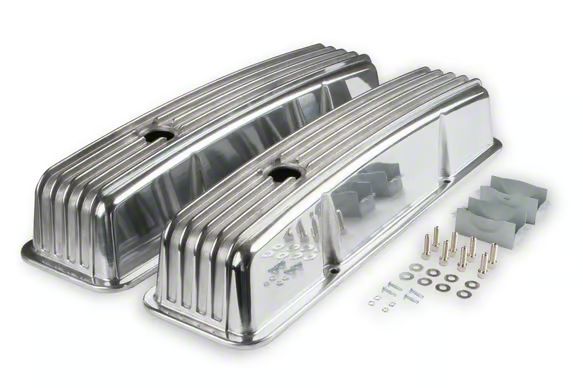 Durable Cast Aluminum Construction. Made from durable cast aluminum, these valve covers are built to withstand harsh engine conditions while maintaining their polished finish. The finned design not only looks great but also serves a practical purpose, helping to reduce engine temperatures during prolonged use. These covers are compatible with most aftermarket cylinder heads, making them versatile for performance upgrades.