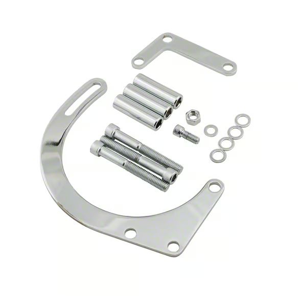 Installation. Designed for a direct fit on small block V8 engines, this mounting kit makes installation straightforward and hassle-free. It fits seamlessly into the lower position, offering a clean and professional look without the need for modifications.