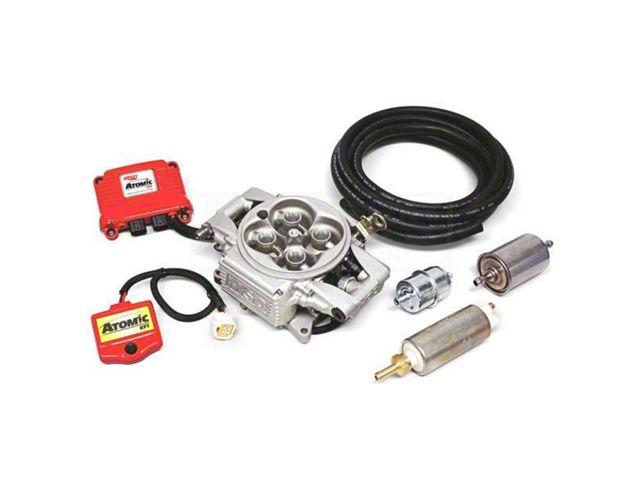 These MSD Atomic EFI fuel injection systems are the perfect choice for anyone planning on converting from carburetor to fuel injection. They include a throttle body, power module (with wideband oxygen sensor), and handheld controller. The throttle body features an integral ECU built on the side, incorporating the TPS, MAP, IAT, and fuel pressure sensors, all in one location. Fuel delivery is provided by four precision 80 psi injectors featuring a stainless steel ball and seat metering method for maximum internal sealing. They also use internal fuel rails, providing a sleek appearance and removing fitting connections where leaks can develop. Atop the Atomic EFIs are annular booster rings that deliver superior atomization of the best fuel mixture