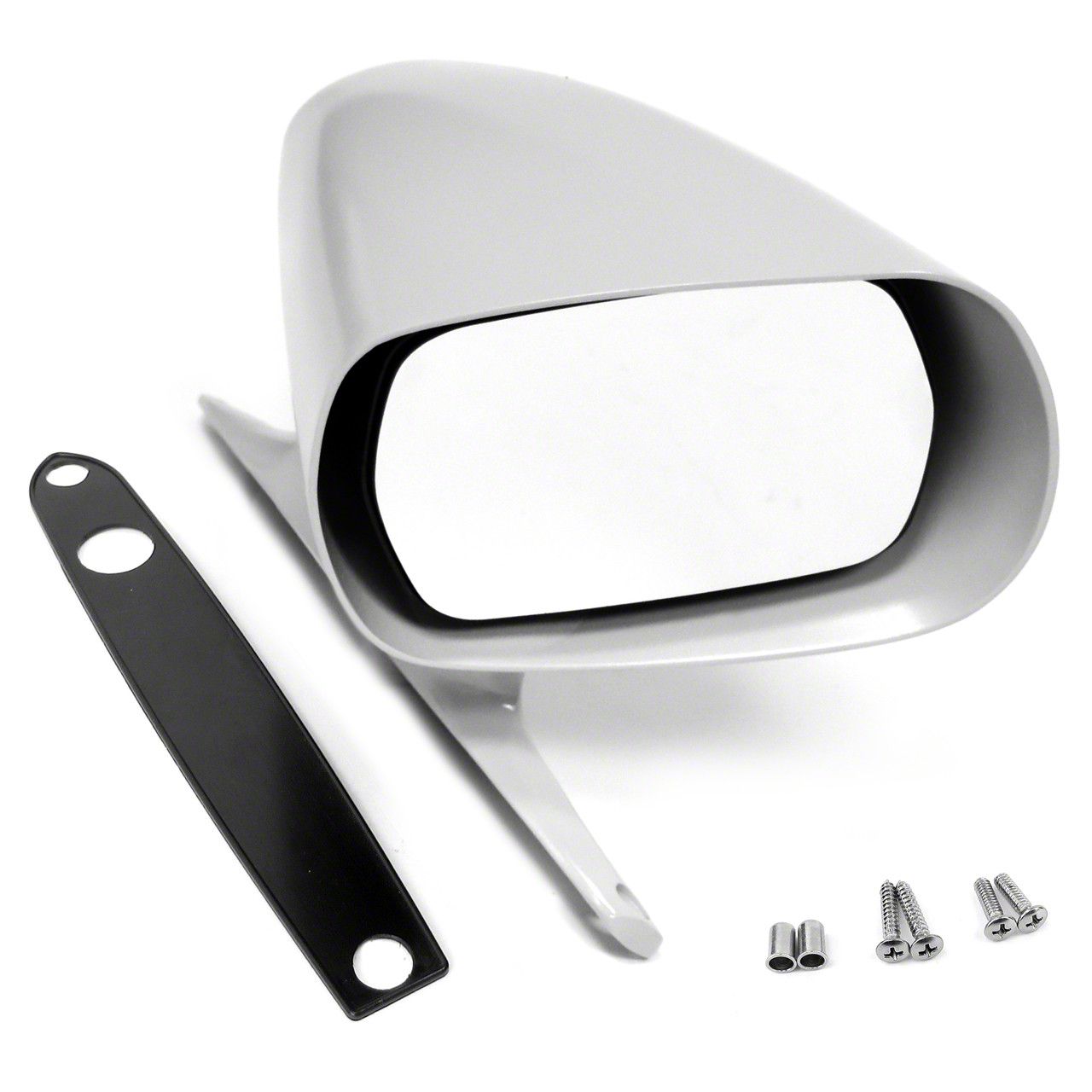 Exterior Racing Mirror Features. The Exterior Racing Mirror; Passenger Side; Unpainted is a direct replacement that restores the original appearance and functionality of factory Racing-type mirrors. It is designed to offer a factory-correct fit and finish, manually adjustable for optimal visibility, making it an essential component for maintaining the authentic look and safety of the vehicle.