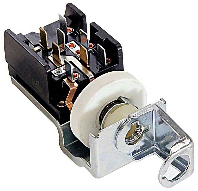 Reproduction 8-terminal headlamp switch to fit various Ford models from 11-16-64 through 1970. Features the correct bracket on the front of the switch for convenient replacement of your FoMoCo original. Replaces OE # C5ZB-11654-A, C5ZB-11654-B, C5ZZ-11654-B. Each switch comes without the knob or shaft, sold separately. NOTE: For models that did not feature an integral bracket in the front, refer to part number # 11654M
