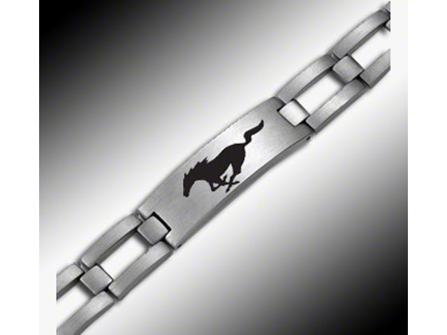 This titanium Mustang bracelet features the timeless running pony and has brushed links with interlocking latch clasp. It is 1/2" wide with the choice of either 8" or 9" length. Order one for your favorite Mustang enthusiast!