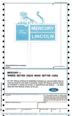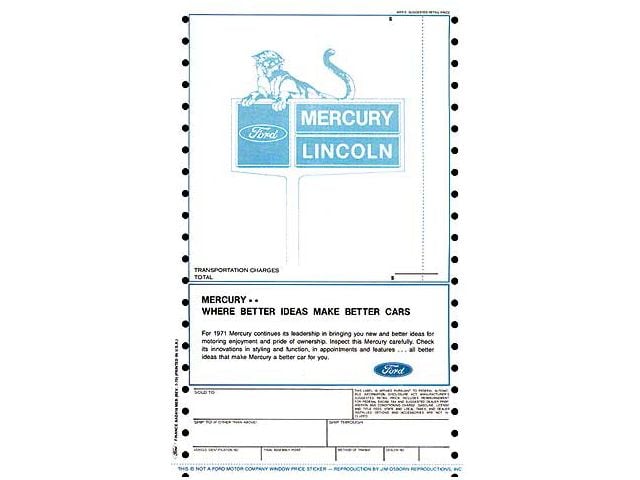 New Car Window Sticker - Mercury