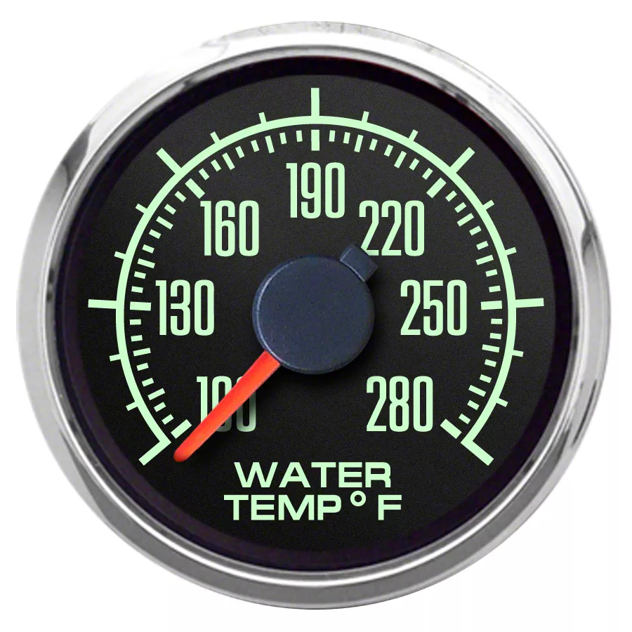 GENII temperature gauges feature LED backlit dials and pointers with full sweep analog readout for precise readings. Kits include gauge, spin-on back clamp, our hi-match temperature sender (1/8-27 NPT thread) and detailed instructions. Temperature readings range 100F-280F.