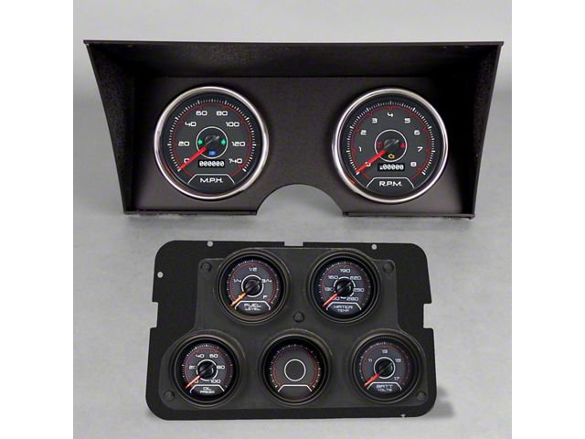 Comprehensive Gauge Upgrade. The New Vintage USA 69 Series Direct Fit Gauge Kit offers a complete and stylish gauge replacement for your Corvette, featuring black anodized aluminum bezels and chrome pointers. This kit provides precise monitoring of your vehicle's performance with easy-to-read dials, including a 120 MPH speedometer, 6000 RPM tachometer, and more.