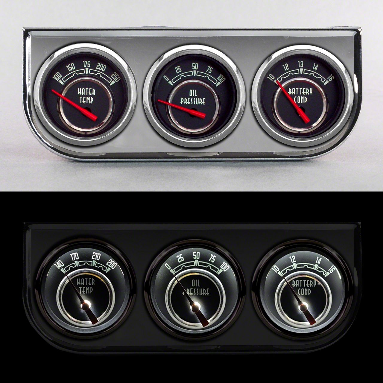 All 3-gauge kits are built on our military-based A-90 platform featuring microprocessor-driven stepper motors, LED lighting and fully customizable inputs. Easy to wire using our exclusive included jumper board for the cleanest connections available.