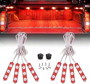 Nilight 24 LEDs Lighting Kit was equipped with super brightness 2835SMD, two separate strands of 4 light pods with 3 LEDs per pod giving you a total of 8 pods and 24 ultra-bright SMD LEDs. It allows you to work on your truck or pickup after dark without having to hold a flashlight or plug in a portable work light. Each rectangle lighting pod is small in size but provides plenty of light and only 0.2 of an inch thick makes them extremely easy to hide and install.
