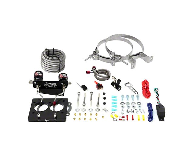 This system includes all of the necessary components; billet aluminum nitrous plate, 50-200 HP jetting, hardware, gaskets, and wiring to properly install a wet nitrous system on your vehicle.