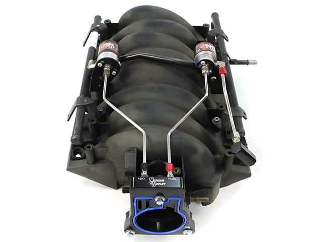 This system includes a billet aluminum plate to fit 98-02 78mm F-Body intakes and is capable of flowing up to 400 HP of nitrous. Each billet plate has a black anodized finish with CNC engraved logo and fuel/nitrous labels.