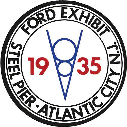 Nostalgia Decal - 1935 V8 - Ford Exhibit Steel Pier, Atlantic City, NJ - 2-3/4 Tall