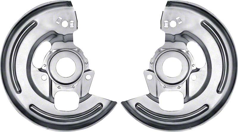 Reproduction of the original disc brake backing plates for use with various 1967-68 GM models with 4 piston caliper front disc brakes. These backing plates are manufacxtured to replciate the originals in quality and design. Includes RH and LH plates.