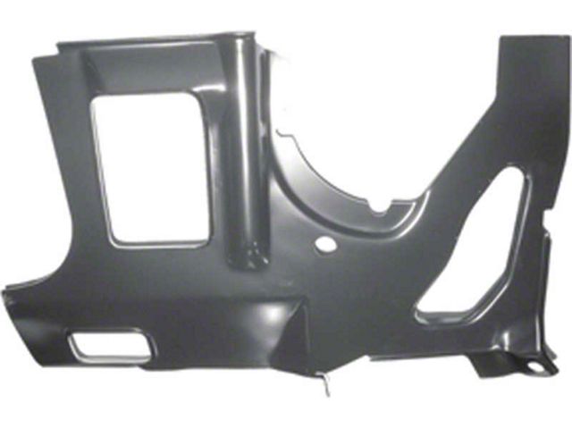 Reproduction of the original lower hinge pillar to rocker panel reinforcement section for use with 1967-69 Camaro, Firebird, and 1968-79 Chevy II, Nova and GM X-body models. Each panel is manufactured in stamped steel to correct factory dimensions allowing replacement of the damaged or rusted original panel. This panel is commonly rusted at the bottom section. Mounts between the inner rocker panel and the front wheel and covered by the kick panel.