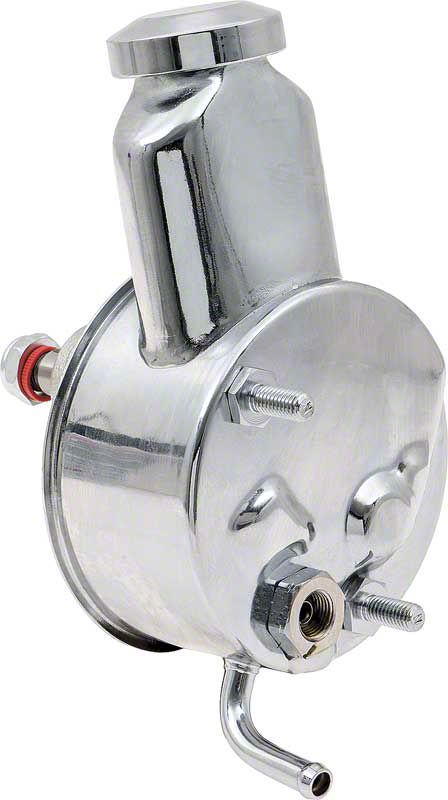 Dress up your engine compartment with this all new Authorized chrome power steering pump with a banjo style reservoir. This all new pump is a great replacement for 1969 Chevrolet big block 396, 427 models as listed. This power steering pump features a reservoir in the correct original configuration with the proper return fitting and clocking. This not only improves authenticity, but makes installation quick and easy. Note: Not for use with station wagon models.