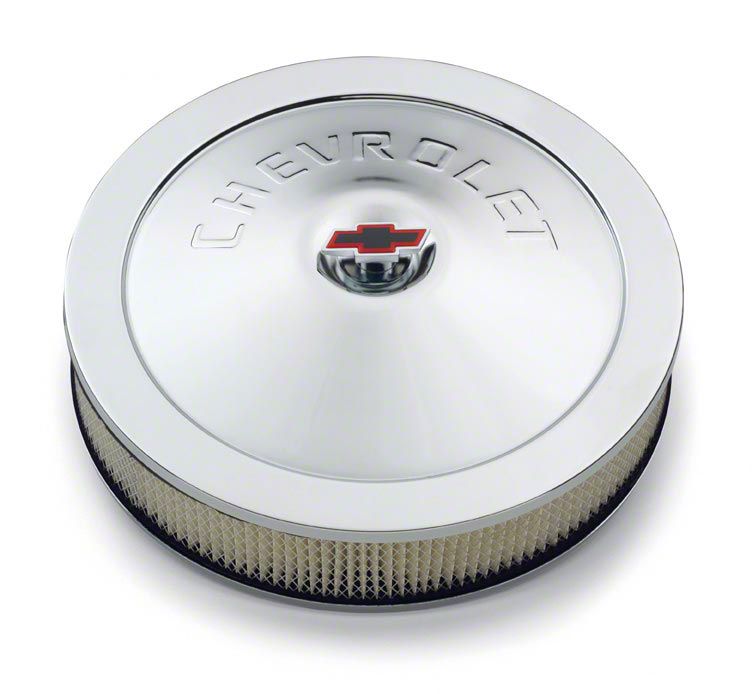 Air filters such as the Nova Air Cleaner Assembly, Open Element, 14", Chrome, With Chevrolet Word, brought to you by Eckler's, are intended to keep the engines clean and parts running smoothly for 1967-1979 model Chevrolet Nova's. Without a working air cleaner assembly, driving your 1967, 1968, 1969, 1970, 1971, 1972, 1973, 1974, 1975, 1976, 1977, 1978, 1979 Nova's can be both uncomfortable and detrimental to the life of your car. Includes genuine GM air cleaner filter, hardware and hi-tech wing nut shown. Top and base chromed and coated to exact OEM specifications. Lid embossed with lettering "Chevrolet". Always choose quality, choose Eckler's for superior restoration and performance products!