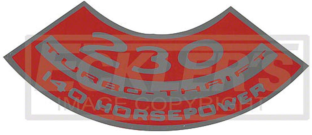 - Correct inline 6 cylinder 230, 140 horsepower air cleaner decal