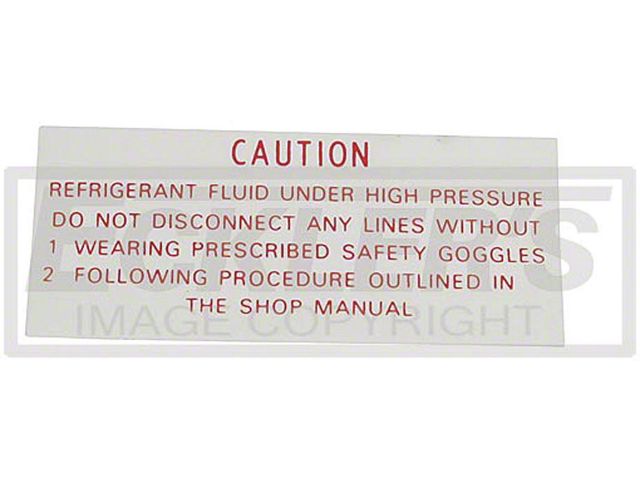 Air Conditioning Compressor Decal, Frigidaire AirCompressor Warning (64-65 Chevy II)