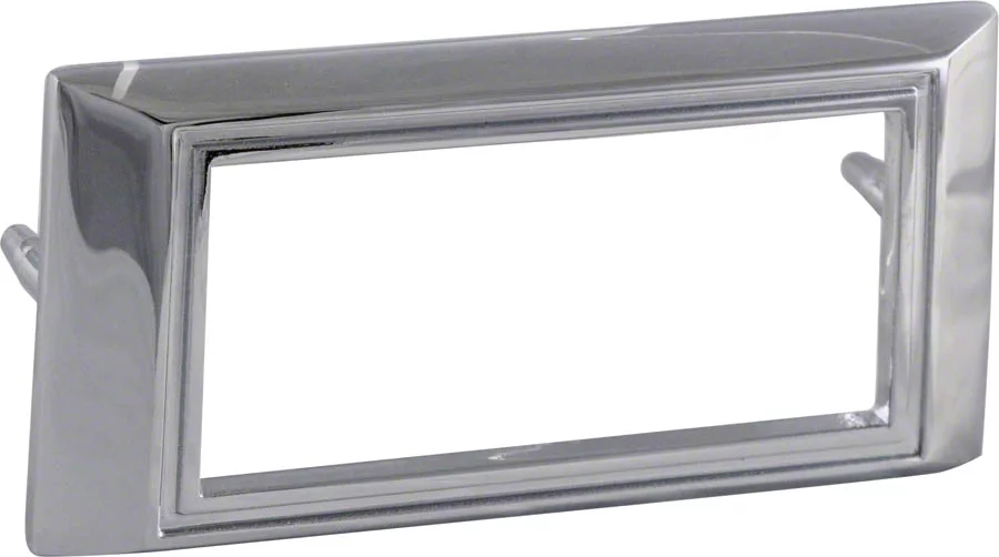 Reproduction of the correct, original chrome side marker bezels for use on the front fender without engine sizes. These bezels insert directly over the lens assembly and act as a trim piece. For use with 1968-69 Novas which did not include an engine size on the bezel. Not correct for rear quarter panel.
