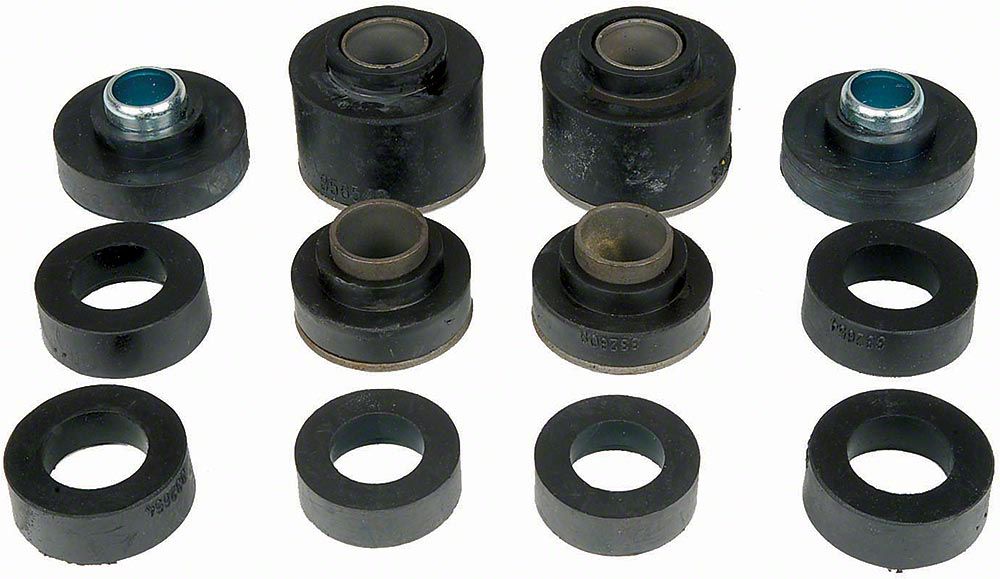 Replacing the original bushings with rubber reproductions is a sure fire way of maintaining originality and mounting the subframe exactly the way the factory intended. Each pre-packaged kit contains all shouldered rubber bushings and biscuits including the radiator support bushings. Each body mount is produced using correct compression molded S.B.R. with steel sleeve inserts where required.