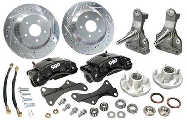 These big brake wheel kits are designed around 2" drop spindles. Includes rotors, calipers, hoses, bearing seals, mounting brackets and all necessary hardware.