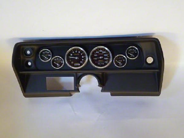 Update your Nova's interior with a Classic Dash gauge panel from Eckler's Nova. Classic Dash's instrument panel will replace the original gauge housing. This panel comes with Autometer Phantom Carbon Fiber Gauges and includes wiring harness, oil and water temp sending units, turn signal and high beam indicators. Classic Dash clusters come complete with 3 3/8 inch 160 MPH speedo, 3 3/8 inch 10,000 RPM tach, 2-1/16 inch oil pressure, water temperature, 0-90 ohm fuel level and volt gauge. Eckler's Nova is proud to offer this superior instrument gauge panel upgrade for your 1968 Nova.