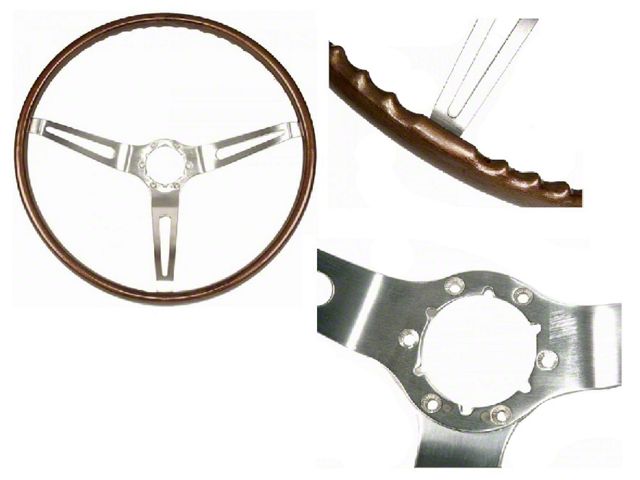 Whether your steering wheel has become scratched, cracked, or worn down, or you simply are interested in a wheel conversion, it may be time to replace your original. Eckler's is excited to offer this Deluxe Walnut woodgrain steering wheel for your 1967-68 Nova. Measuring 16 inches across, this new officially GM licensed restoration steering wheel will give the appearance and feel of your original wheel, fully wrapped in simulated walnut wood ABS plastic and featuring three original style brushed stainless aluminum spokes. It is important to note that if you are converting a standard wheel to a woodgrain wheel, you will also need to change the hub assembly. This Deluxe Walnut wood wheel will brighten up your interior, making it enjoyable to cruise again. From