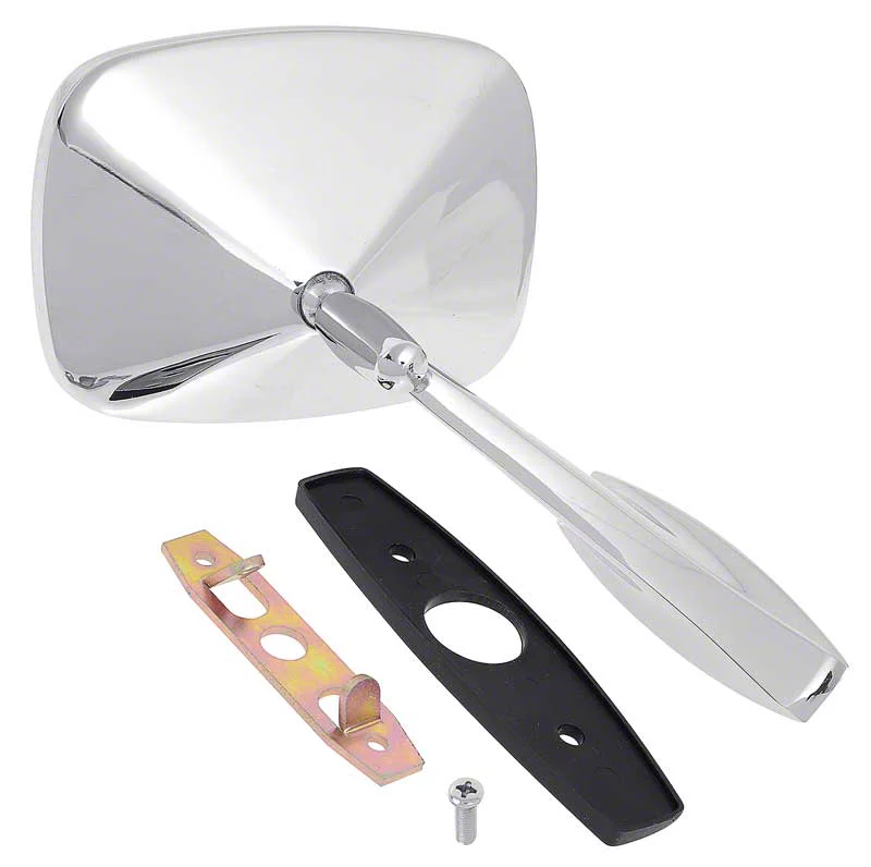 1971-1979 Buick, Chevy, Pontiac, Oldsmobile; Chrome Outer Door Mirror; RH or LH; with Flat Bracket and Hardware; Each; Various Models