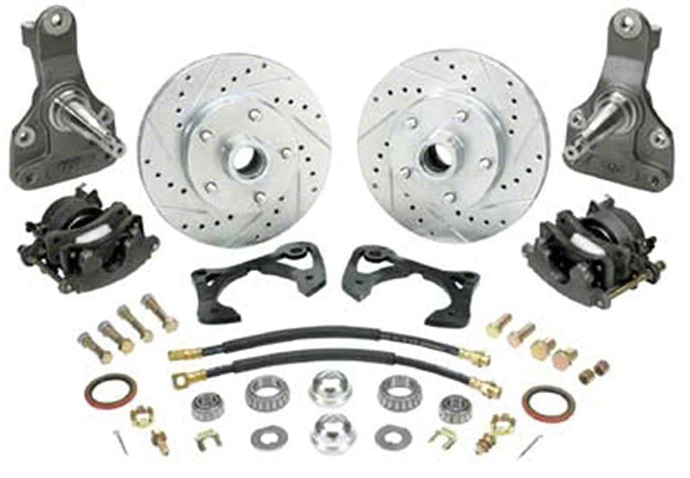 Front Disc Brake Conversion. The Drop Spindle Kit, Front, With Drop Spindles, For 14 Wheels is specifically engineered to upgrade braking performance on the Chevy II Nova. It replaces factory drum brakes with a reliable front disc brake system that enhances stopping power and vehicle stance through a 2 inch drop spindle design. This setup is important for those seeking improved brake performance and a lowered look while maintaining correct suspension geometry.