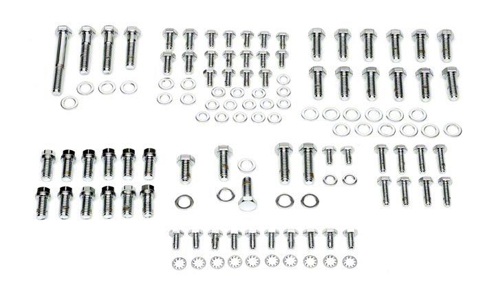Engine Bolt Kit, Small Block, Chrome, For Cars With Exhaust Headers (67-68 Chevy II; 69-79 Nova)