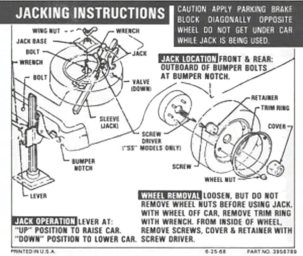 Nova Jack Instruction Decal,Super Sport, 1969-1971 (Nova, Super Sport SS Coupe, Two-Door)