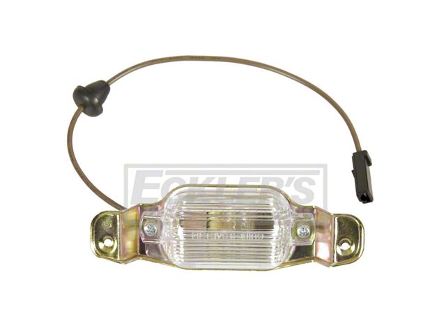 Nova clear plastic parts do one of two things over time, they can turn milky and hazy or completely fall apart. Nova gold cad plating will turn chalky over time. Both of these are main components of your Nova license lamp assembly. Eckler'soffers this superior reproduction 1967, 1968 or 1969 first generation Nova license lamp assembly to replace that ugly, rusted one on your Nova. This reproduction assembly includes cad plated housing, socket with bulb, brown color lead wire with grommet and correct black terminal end, crystal clear lens with script, white colored lens gasket, and plated screws. This license lamp assembly is just another one of the best quality parts Eckler's brings you to keep your Nova