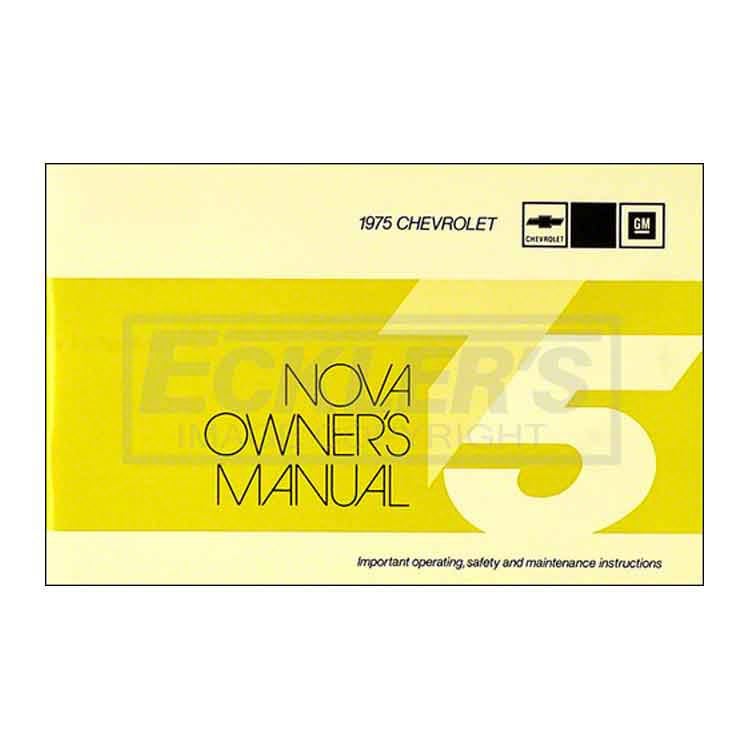 Is your 1975 Nova owner's manual missing? Is there something about your Nova you need to brush up on? It can be hard to make guesses when you have no information about your specific model at your fingertips. Eckler's Nova wants to ensure that you have all the information you need, by providing this reproduction of the 1975 Nova owner's manual. Your owner's manual will include everything you would need to know about operation instructions, instrument location and controls, and more. No sort of restoration on your Nova should be done without the proper instructions to read, so get your replacement owner's manual today. Trust Eckler's Nova for all of your restoration and replacement needs for your 1975 Nova!