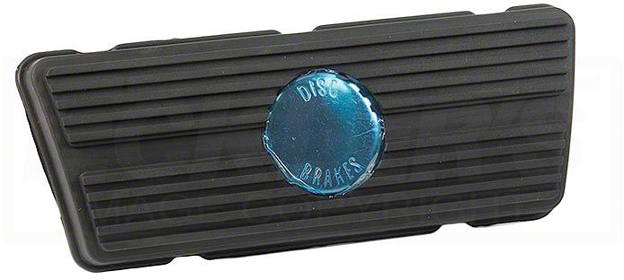Correct reproduction of the original brake pedal pad originally equipped on 1970-71 Nova models equipped with both an automatic transmission and front disc brakes. This reproduction features the correct design ribbed rubber footpad with the chrome "DISC BRAKES" medallion in the center of the pad.