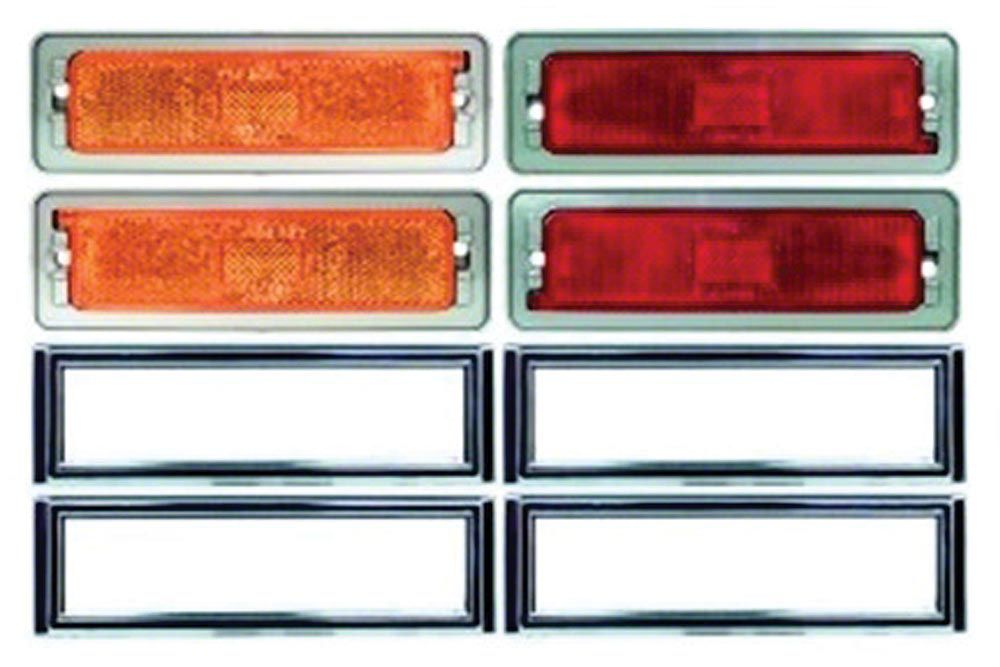 Each kit includes the correct lenses and bezels for a complete replacement. Kits are available for 1968-74 models. Replace your original side marker lamps and add new life to the fenders and quarter panels. Replace your front and rear side marker lamp assemblies with this complete, easy to install kit which provides a complete set of side marker lamp assemblies. Each kit includes the lens and the housing, along with all four high polished chrome bezels