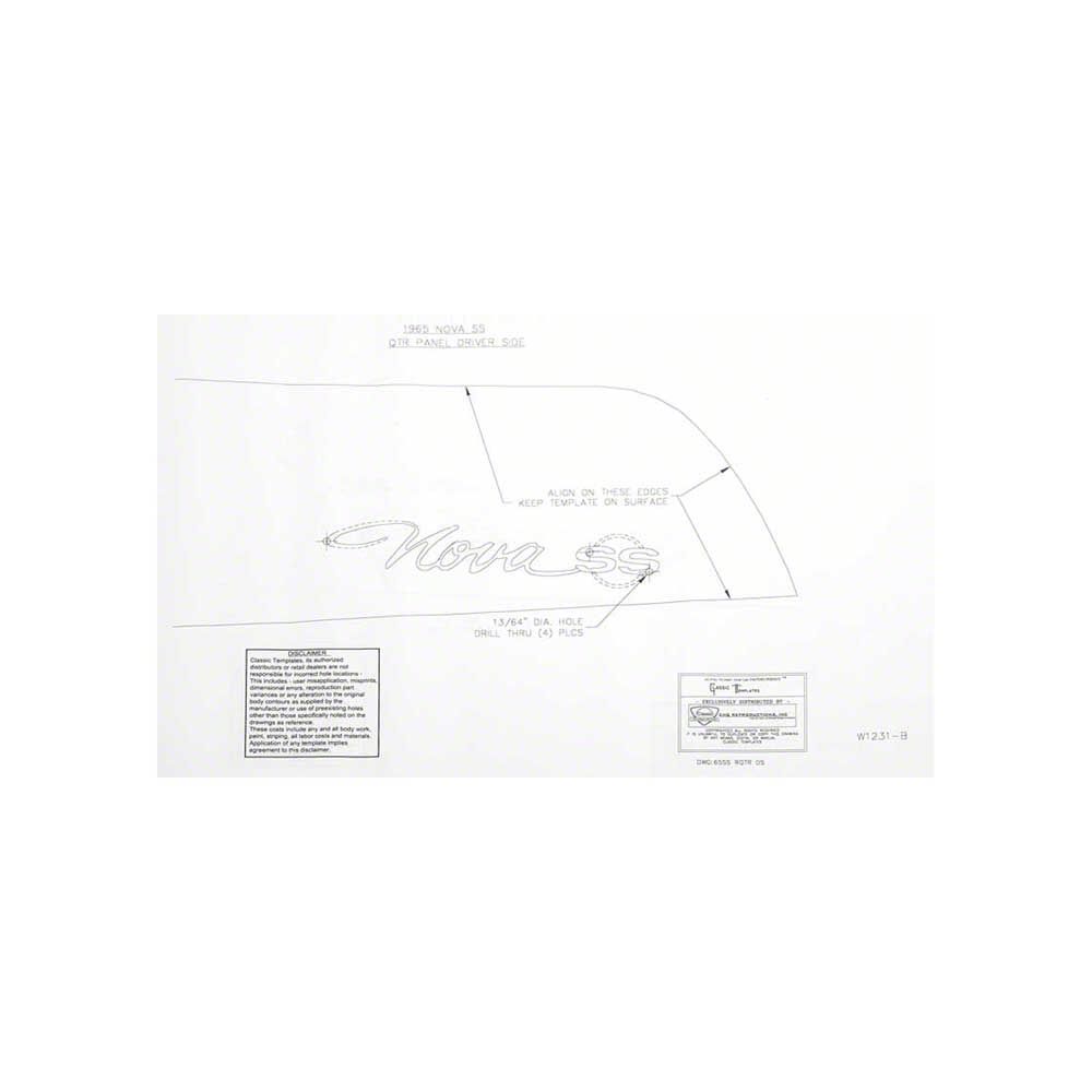 When you decide to install new emblems and body moldings to the sheet metal of your 1965 Chevy Nova, it can be daunting to get started. You want an exact fit on your Nova Super Sport, but you might lack the proper materials. Eckler's Nova is happy to be your solution, by offering the best emblem and body template kits for your Nova. These easy to use full-size digitally rendered emblem placement templates will exactly locate all body, fender, hood, header, and trunk lid emblem holes quickly and professionally. We also offer templates for lower body moldings, rear quarter panel louvers, backup lamps, antenna hole placement, sidemarker locations, and fenderwells. Don't spend another moment agonizing on how to best apply your new emblems or body components. Make the job