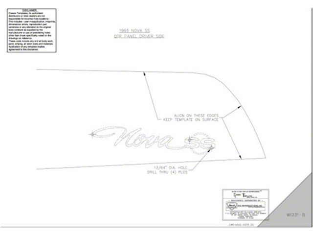When you decide to install new emblems and body moldings to the sheet metal of your 1965 Chevy Nova, it can be daunting to get started. You want an exact fit on your Nova Super Sport, but you might lack the proper materials. Eckler's Nova is happy to be your solution, by offering the best emblem and body template kits for your Nova. These easy to use full-size digitally rendered emblem placement templates will exactly locate all body, fender, hood, header, and trunk lid emblem holes quickly and professionally. We also offer templates for lower body moldings, rear quarter panel louvers, backup lamps, antenna hole placement, sidemarker locations, and fenderwells. Don't spend another moment agonizing on how to best apply your new emblems or body components. Make the job