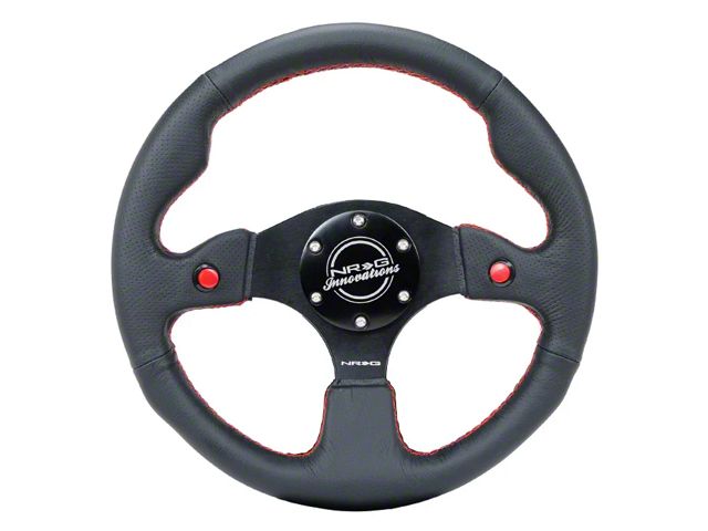 NRG Innovations 320mm Dual Button Steering Wheel; Black Leather