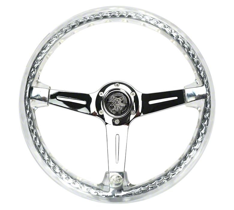 Application. This NRG Innovations Matsuri 350mm 2-Inch Deep Dish Steering Wheel; Chrome and Clear fits universal applications; some adaptation may be required.