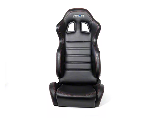 Superior Driving Comfort. Upgrade your driving experience with the NRG Innovations Reclinable Racing Seats, designed to provide superior comfort and lateral support. These seats feature an ergonomic design that holds the driver securely, reducing fatigue during aggressive driving. The black cloth finish with red stitching adds a sleek, race-inspired look to any interior.