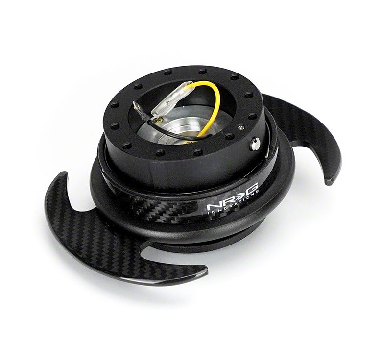 Featherlight Performance. The NRG Innovations 3.0 Steering Wheel Hub Quick Release distinguishes itself through its meticulous utilization of high-quality carbon fiber material as the foundational element of its primary structure.