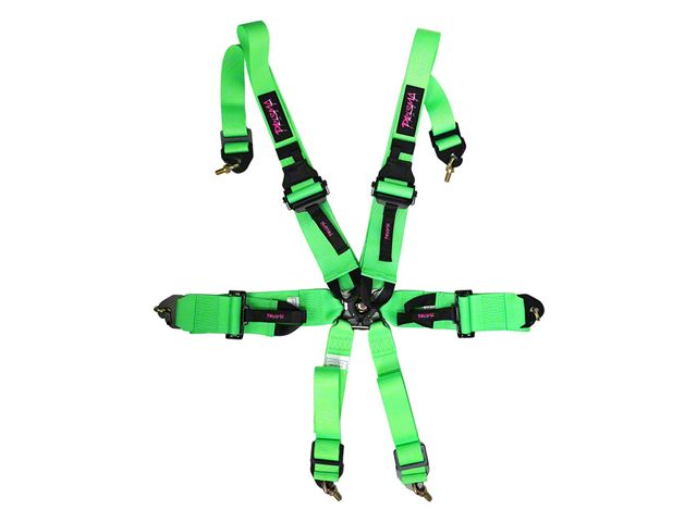Race-Ready Safety. The NRG Innovations FIA HANS Approved 6-Point Rotary Cam-Lock Racing Seat Belt Harness in a Neon Green with Prisma Logo finish is designed to deliver superior support and safety in high-performance applications. Whether you're pushing your vehicle on the track or looking to upgrade your streetcar's safety system, this harness ensures you stay securely strapped in at all times. Featuring an FIA HANS-approved 6-point rotary cam-lock design (FIA 8853-2016), it meets strict motorsport safety regulations and is ideal for serious drivers demanding maximum protection.