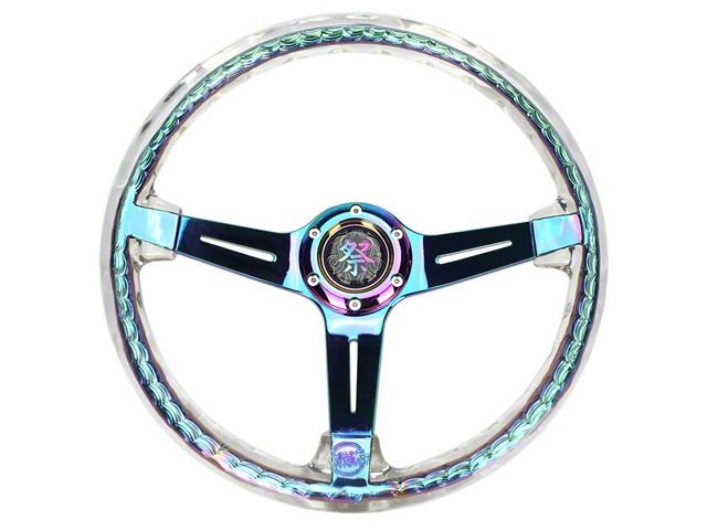 Command the Streets or the Track With Vibrant Style and Responsive Handling. The NRG Innovations Matsuri 350mm Deep Dish Steering Wheel fuses aggressive design with functional performance. The neochrome spokes and transparent clear grip combine for a show-stopping visual while providing the race-ready feel needed for quick steering maneuvers during aggressive driving sessions.