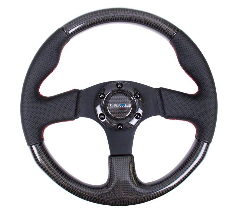 NRG Innovations 315mm Carbon Fiber Steering Wheel; Perforated Leather with Red Stitching (Universal; Some Adaptation May Be Required)